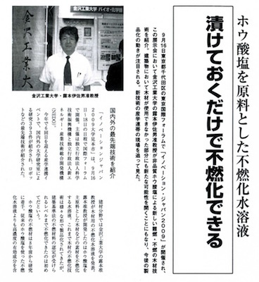 この問題を解決出来る不燃剤「SOUFA(ソウファ)」が、金沢工業大学、露本先生によって開発されました。